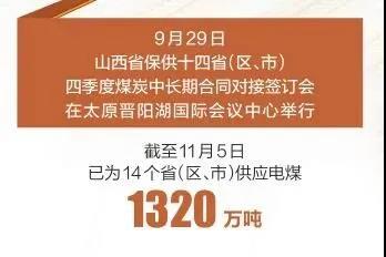 山西作為全國(guó)的產(chǎn)煤主要省份,積極貫徹落實(shí)黨中央、國(guó)務(wù)院關(guān)于做好煤炭保供穩(wěn)價(jià)工作、確保群眾溫暖過(guò)冬的決策部署,發(fā)揮能源大省的使命擔(dān)當(dāng),站在講貢獻(xiàn)、講大局、講落實(shí)的高度,在基本滿足本省民生用煤需求的基礎(chǔ)上,按照“雙控”要求限制高耗能企業(yè)用煤,把有限的能源不遺余力地貢獻(xiàn)出來(lái),全力以赴為用煤緊張的省份提供適銷對(duì)路的優(yōu)質(zhì)煤炭,推動(dòng)煤炭?jī)r(jià)格理性回歸,為保障國(guó)家能源安全和群眾溫暖過(guò)冬作出了積極貢獻(xiàn)。 推動(dòng)煤炭增產(chǎn)增供 9月29日,“山西省保供十四?。▍^(qū)、市)四季度煤炭中長(zhǎng)期合同對(duì)接簽訂會(huì)”在太原晉陽(yáng)湖國(guó)際會(huì)議中心舉行。會(huì)上,山西與河北、山東、江蘇、浙江、天津等14個(gè)?。▍^(qū)、市)簽訂四季度煤炭中長(zhǎng)期保供合同,保障能源供應(yīng)。截至11月5日,已為14個(gè)?。▍^(qū)、市)供應(yīng)電煤1320萬(wàn)噸。
