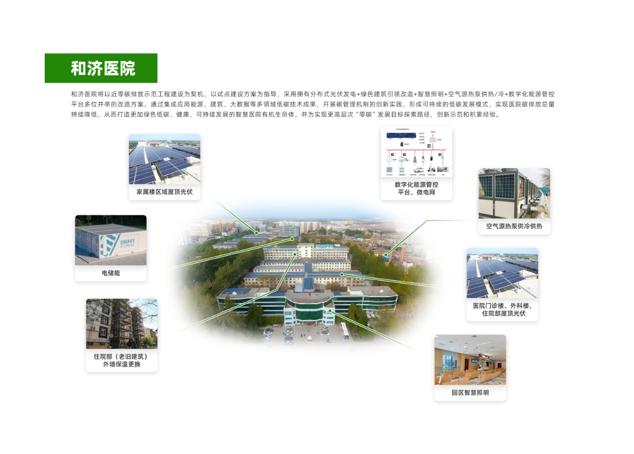 祥睿能源將為醫(yī)院帶來(lái)最新的節(jié)能技術(shù)和解決方案,采用數(shù)字化能源管理平臺(tái),以實(shí)時(shí)監(jiān)控和管理醫(yī)院的能耗情況;引入儲(chǔ)能系統(tǒng)優(yōu)化醫(yī)院的能量使用,修繕及改造現(xiàn)有光伏系統(tǒng),增強(qiáng)醫(yī)院自身的可再生能源發(fā)電能力。通過(guò)這些節(jié)能舉措打造一個(gè)高效、智能的能源管理體系,確保醫(yī)院的能源消耗和碳排放實(shí)現(xiàn)可持續(xù)降低,提升能源效率,為綠色發(fā)展奠定堅(jiān)實(shí)基礎(chǔ)。