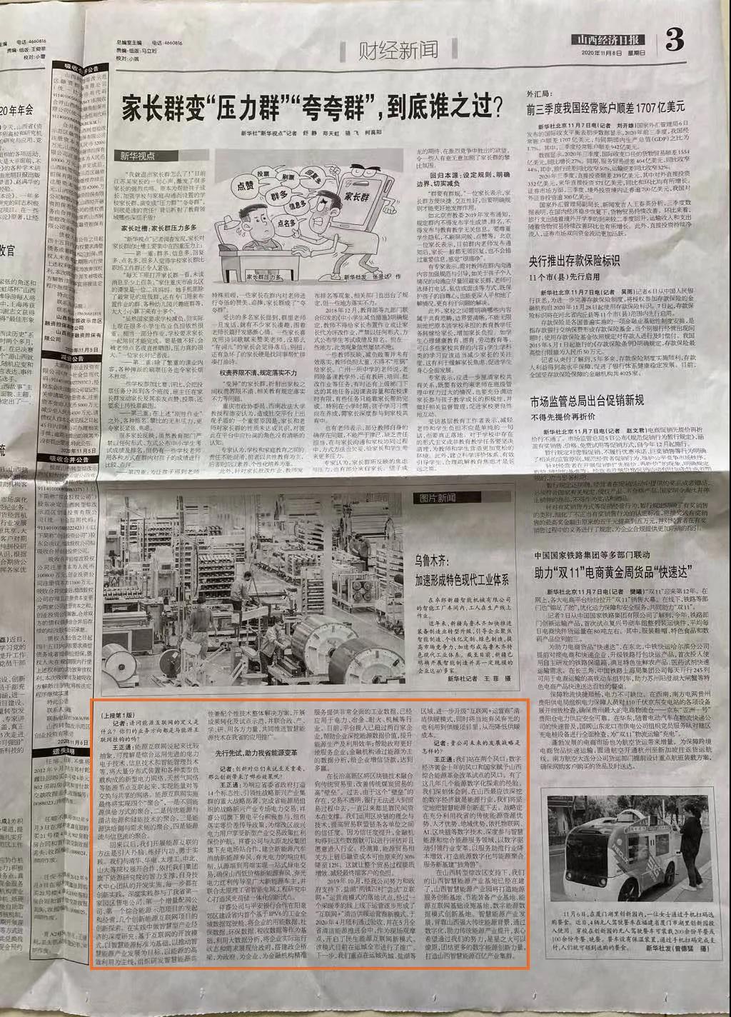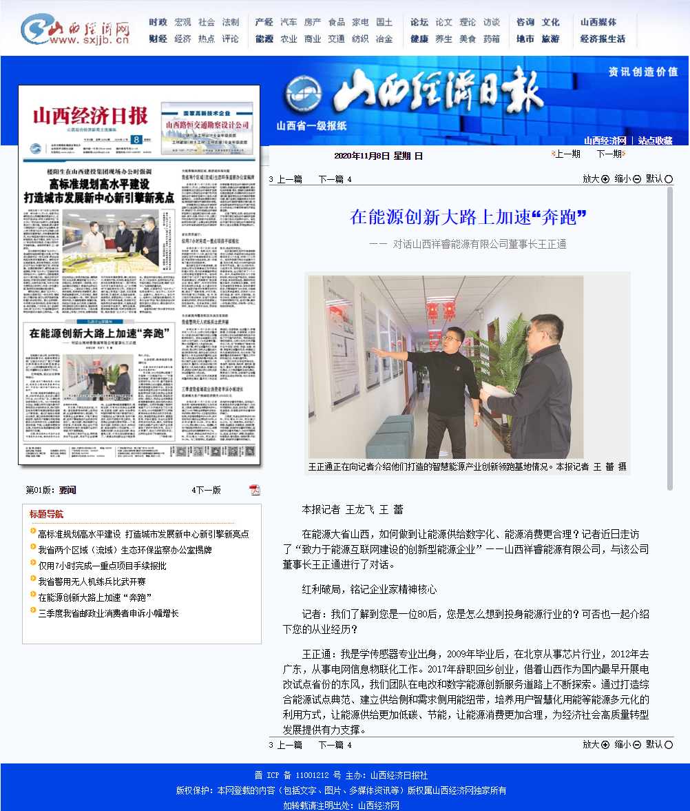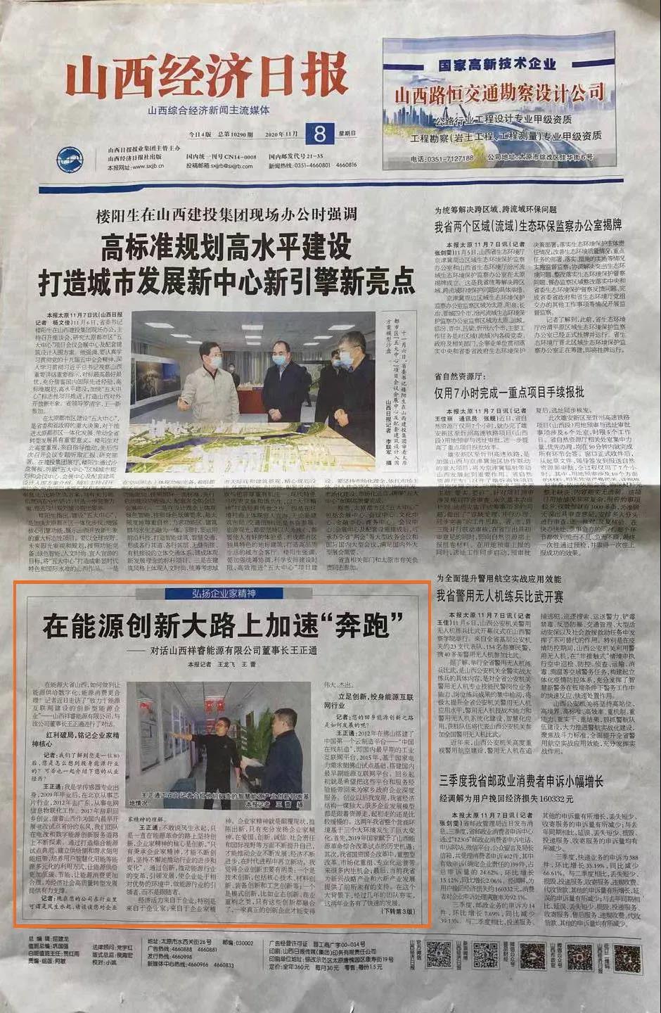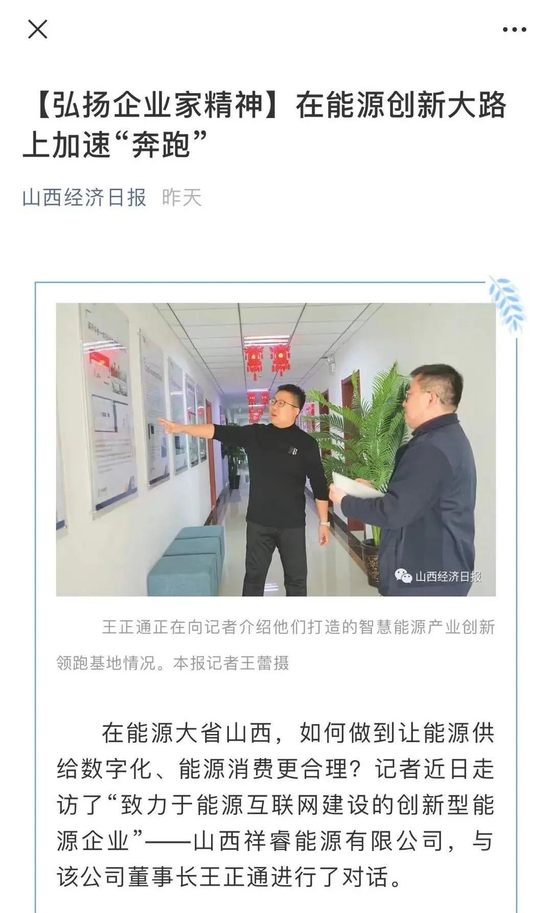2020年11月8日《山西經濟日報》晉周刊專欄,就祥睿能源董事長王正通與記者的對話進行了專題報道,淺談如何弘揚企業(yè)家精神。 企業(yè)家是企業(yè)的統(tǒng)帥和靈魂,也是改革創(chuàng)新的重要力量。習近平總書記指出:“我們全面深化改革,就要激發(fā)市場蘊藏的活力。市場活力來自于人,特別是來自于企業(yè)家,來自于企業(yè)家精神?!弊鳛槠髽I(yè)家,要運用創(chuàng)新意識和創(chuàng)新能力,能注意到別人忽略的問題,想到他人沒有想或不敢想的問題,抓住時機,出奇制勝。無論是管理創(chuàng)新、產品創(chuàng)新、服務創(chuàng)新還是技術創(chuàng)新,本身就充滿著市場和技術的不確定性,需要企業(yè)家有膽識、有魄力,敢于擔當。面對經濟發(fā)展新常態(tài),更需要發(fā)揚企業(yè)家精神,以更大的決心、更大的勇氣參與市場競爭,引領企業(yè)激發(fā)創(chuàng)新改革活力。